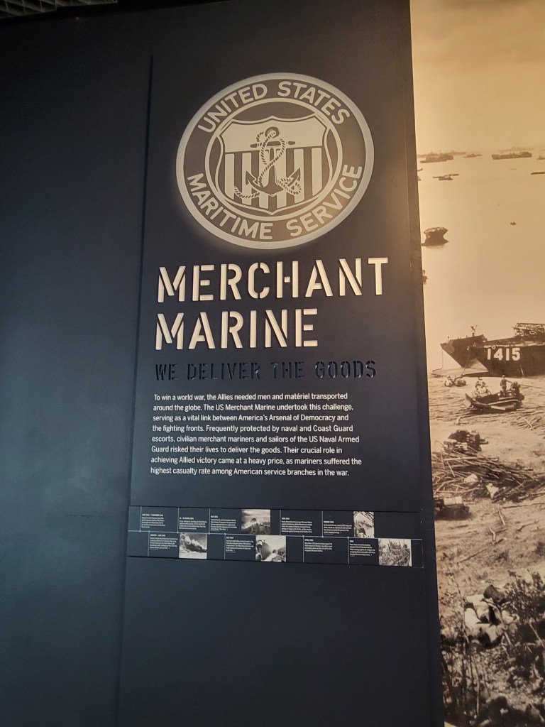 I then got a ticket to see a movie shown at the museum, a sort of 4D overview of the war, narrated by Tom Hanks called, “Beyond Boundaries” – it was a striking experience. When bombs dropped on the screen, the seats of the audience would shake. When the cold winter of the Battle of the Bulge was being battled in the movie, snow, or some very convincing replica of it fell from the ceiling of the theater. By that point, it was already mid-afternoon. And, since becoming a member, I was informed that I got 20% off at all of the stores in the museum, but only for that day. Well, my mission was then clear, and I proceeded to spend a ridiculous amount of money as I hopped from store to store buying up books for research, birthday presents for my Dad’s upcoming birthday that will coincide with Thanksgiving this year and that I will unfortunately miss, and I was barely able to contain myself when I went into their vintage 1940s clothing store. Let me tell you, I loved every piece of it and wanted it all, but restricted myself to buying only two pieces as the prices were most certainly 2023 prices and then some. By the time the first day was done, I had seen one exhibit, been part of a wonderful ceremony, seen one movie and spent a bunch of money. At this point, I still thought it possible that I could tackle the rest of the museum on Sunday.