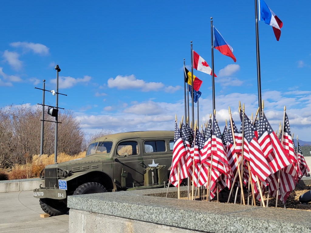 I am writing today’s post at a Harvest Host in Carlisle, Pennsylvania. When my Aunt Cathy heard about this trip, she was quick to suggest I swing by Carlisle where my Grandpa Irving had his army training. Today, I will swing by their local Education Center where I believe there is an archives. Perhaps I will see a record of him! A neat way to finish up the World War II portion of the trip. Two days ago was the big picture commemoration, and today, will finish things back home, in my own personal history. And then, tonight, I’m off to the Big Apple to finish the whole trip on Broadway. Gotta finish the musical writing trip in the home of musicals! Perhaps, someday, I’ll be there backstage before curtain rises to rave reviews of Janey’s War. This time, I’ll be there on the front side of the curtain, happily in the audience, ready to enjoy the musicals that I love so much. Then I’ll head home for a very brief stop to enjoy some qt with my guy before I hop on a plane on Tuesday morning for Amsterdam.