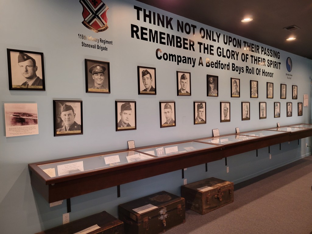 Then I made my way to Bedford, Virginia, home of the National D-Day Memorial and a Tribute Center to the Beford Boys. Bedford was chosen as the site of the National D-Day Memorial because, as a percentage of their population, they lost more men on D-Day than any other community in the nation. Within the first 10 minutes of the invasion, Bedford lost 19 of their sons, and a few more in the days that followed. With a town of a population of 3,200, this was, of course a devastating loss and a mirror for the pain and sacrifice that hundreds of thousands of American families made during that time (and millions upon millions in the world).
