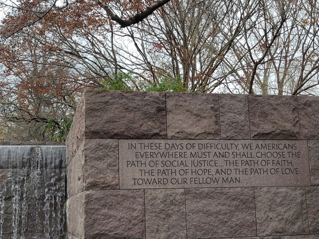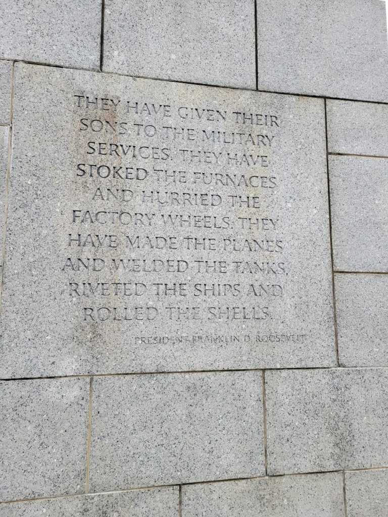 I then made my way through the FDR memorial which I had never been to despite my many times in D.C. Again, every stone, every quote, every plaque, every sculpture was infused with a new meaning after my self-imposed isolated immersion.
