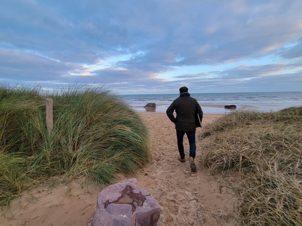 The tide imposes its will upon it all, insistently pushing the present as quickly as possible into the past. Unlike a forest that might grow around a relic, making any history permanent, or the earth that might preserve a story in a hidden place underfoot, on the beaches of Normandy in France, it is only human will that can do the work to keep that history present.