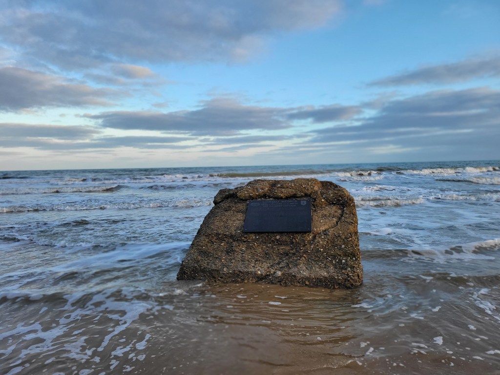 If it weren’t for the plaque nailed upon a stone in homage to the medics that laid their lives on the line in the effort to save as many as they could, a stone big enough and deeply entrenched enough in the earth to lay its claim to a permanent spot on the beach despite the tide beating upon it with rhythmic persistance, I would have had no evidence of the gruesomeness, heroism and massive efforts of thousands of ships and men that once filled the seas at this shore.