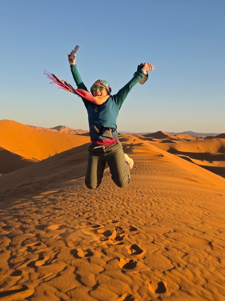 But, once we were waist dip in our Morocco adventures, I got way more than I’d hoped for when I first planned this stop. When planning my language trip around the world, I chose to put our little Moroccan adventure into the seventh week of my travels for largely logistical reasons. I would be in Granada, Spain the two weeks prior, a quick flight across the Strait of Gibraltar to get there. Plus, it was going to be Valentine’s Day and Ryan’s birthday two days later. And my man loves desert landscapes. It just all made perfect sense. Once we got on our 3 day tour towards the Sahara, and did so in a sea of international travelers, t was clear that this was the perfect linguistic layover as I hopped from one language lily-pad to another. After 6 weeks working on my Spanish and French, two languages that I came into this trip with a decent handle over (and PLENTY of room for some much-needed improvement), as we traveled on our 3 day tour from Marrakech to the Sahara, I found myself in my dream language scenario, like having arrived at the top of a mountain I didn’t previously realize I had been climbing. Now, I was out of school, and in the wilds of the world in a mix of nationalities, getting a chance to take my newly honed skills out for a test drive. And I found myself getting to live, in real time, the linguistic dream that I had always had – having the ability to build a bridge of words that allowed me to get to know people and share good times where there would otherwise have been a barrier, wow – it was everything I had always hoped when I first set out to pursue language learning!