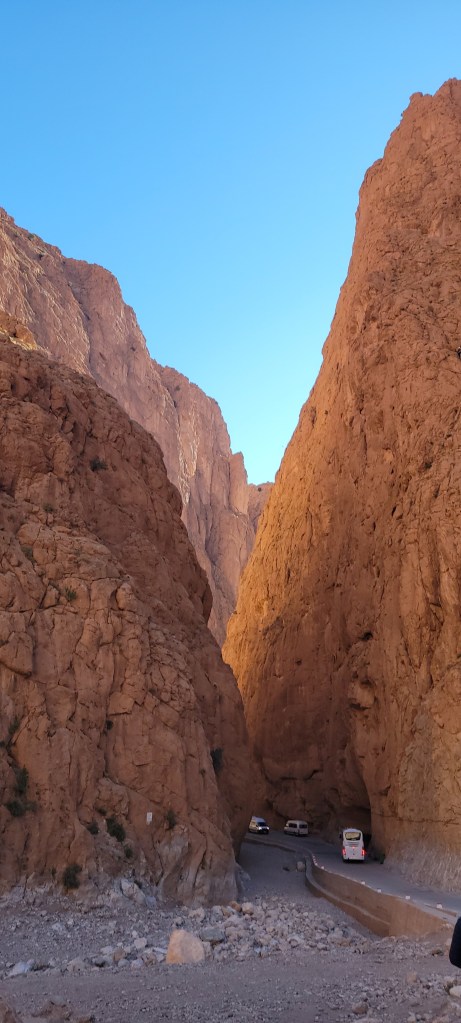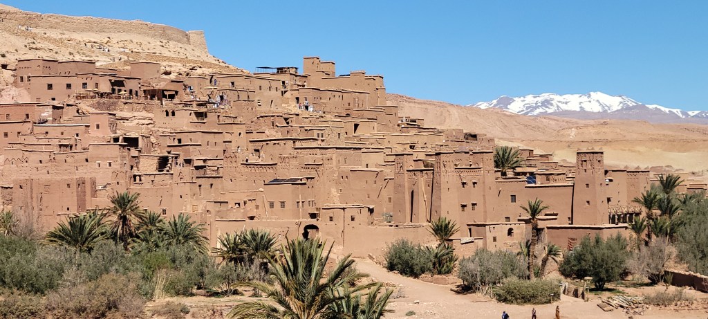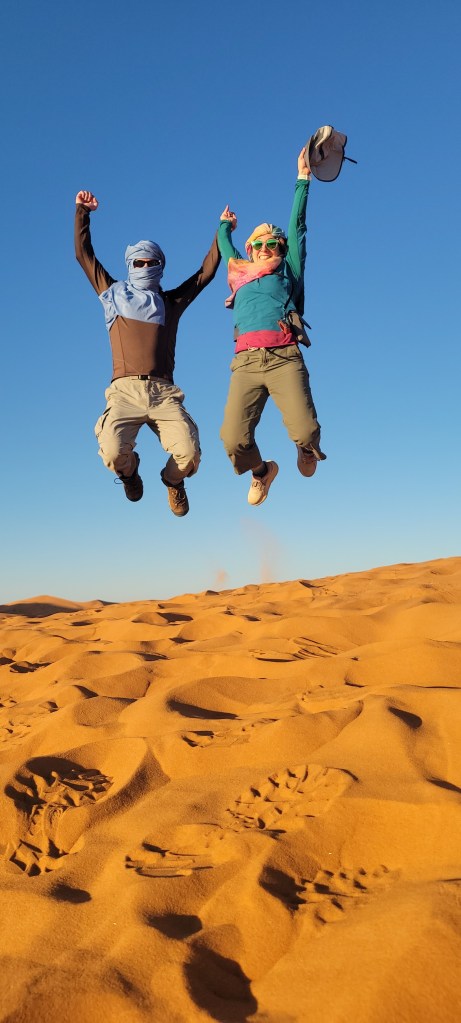 Thanks to a recommendation from our adventurous niece, (shout out to Claire!) who had gone on a Moroccan trek into the desert while she was studying a semester abroad in Madrid, we participated in an absolutely fantastic 3-day guided tour from Marrakech to the bright orange sands of the Sahara Desert. We traveled through the UNESCO world heritage site of Ait Ben Haddou (that you might recognize from a slew of movies, from Indiana Jones and the Last Crusade to both Gladiators to the Bourne Ultimatum and many more), through the stunning Atlas Mountains into the beautiful small town of Dades, through the stunning Todgha Gorge all the way to the desert town of Merzouga sitting right on the western edge of the Sahara desert.